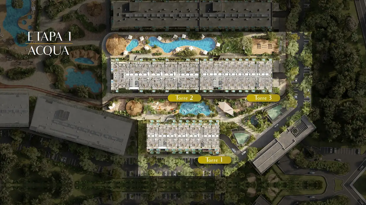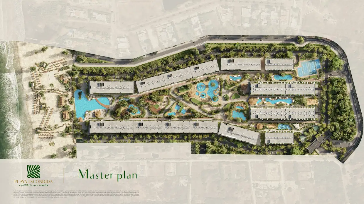 PLAYA ESCONDIDA es un resort residencial desarrollado en 240.000 m² con 6 etapas de apartamentos en torres de 6 pisos para disfrutar de la mejor vista de la playa y el mar.