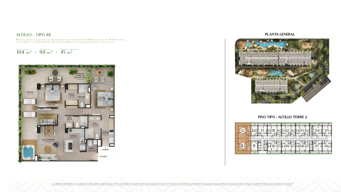 Las imágenes contenidas en los impresos, renders, planos, maquetas y en general la totalidad de las piezas publicitarias del proyecto, son ilustrativas y de representación arquitectónica. En consecuencia, pueden presentar variaciones y diferir de la realidad toda vez que contienen elementos de apreciación estética que son interpretación del artífice de la pieza publicitaria y no comprometen ni obligan a la sociedad vendedora. En todo caso, el proyecto, las áreas, especificaciones y dimensiones definitivas, serán las aprobadas por la Curaduría Urbana y/o autoridad administrativa competente.